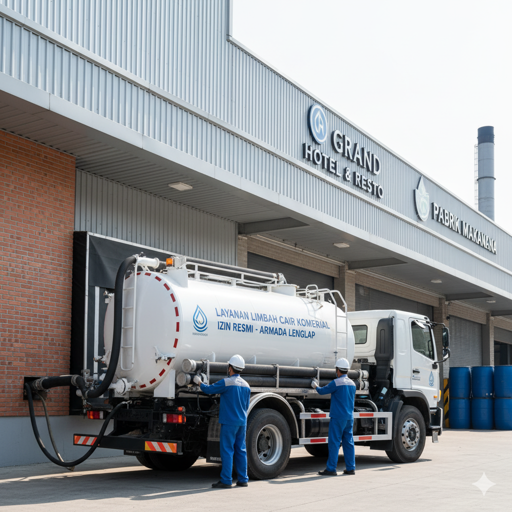 Layanan khusus untuk limbah cair dari restoran, hotel, pabrik, atau bisnis lain. Armada lengkap dan izin resmi.